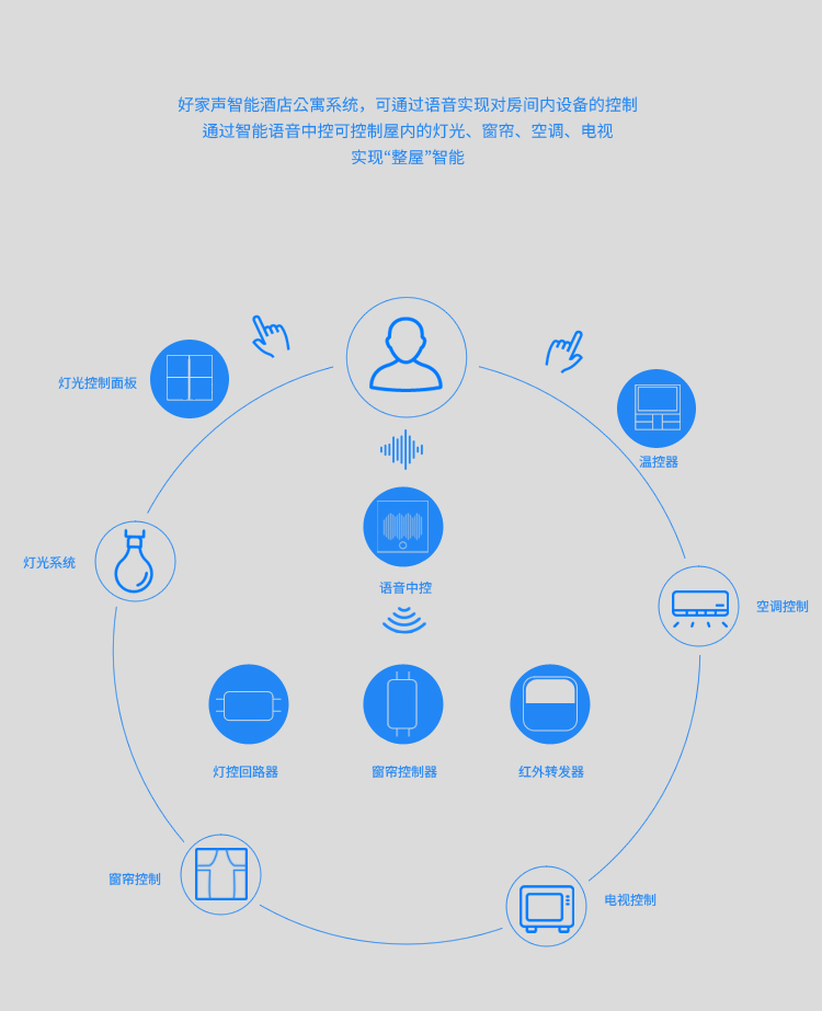 “當(dāng)然有”,好家聲酒店智能語音控制系統(tǒng)解決方案-人與科技融合,個(gè)性定制化智慧酒店打造溫情個(gè)性的生活場(chǎng)景;徹底將人從煩冗復(fù)雜的居住流程中解放出來;給予用戶最舒適、放松的入住體驗(yàn)!