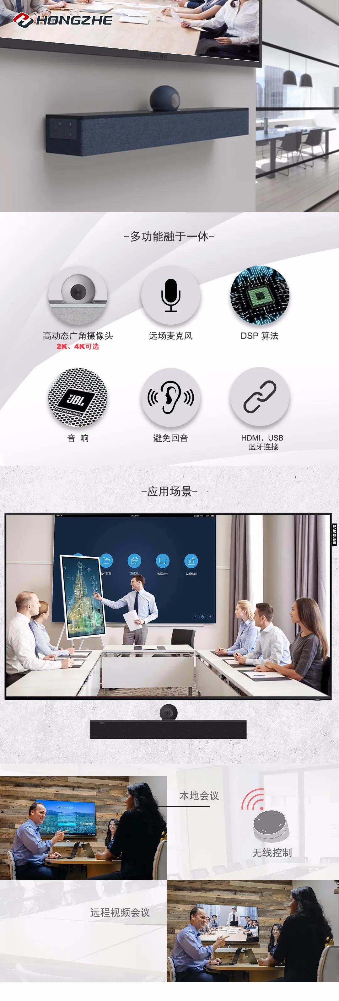 方案中采用聲學(xué)回聲消除功能的遠(yuǎn)場(chǎng)麥克風(fēng)陣列、能夠捕獲整個(gè)房間的高動(dòng)態(tài)廣角攝像頭以及自動(dòng)化顯示的全面功能,滿(mǎn)足了高效遠(yuǎn)程會(huì)議協(xié)作要求,使得人們?nèi)粘9ぷ鳌⑸缃蛔兊酶虞p松、便捷。