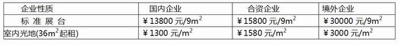 1、標準展位配置:提供三面圍板、洽談桌一張、 椅子兩把、中英文楣板,二盞射燈、220V/5A電源插座一個、展位鋪滿地毯;其他額外開支由展商承擔(雙開口展位多加收20%展費);