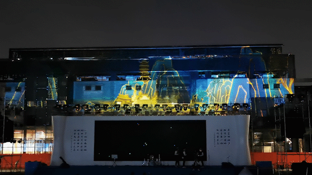 31000流明高清工程投影機(jī)將表演舞臺背后的墻面作為展示屏。45米X10米的超大尺寸展示,運(yùn)用不一樣的藝術(shù)動態(tài)展示,產(chǎn)生了超乎想象的震撼效果,是充滿想象力的影像與建筑物搭配的完美結(jié)合。