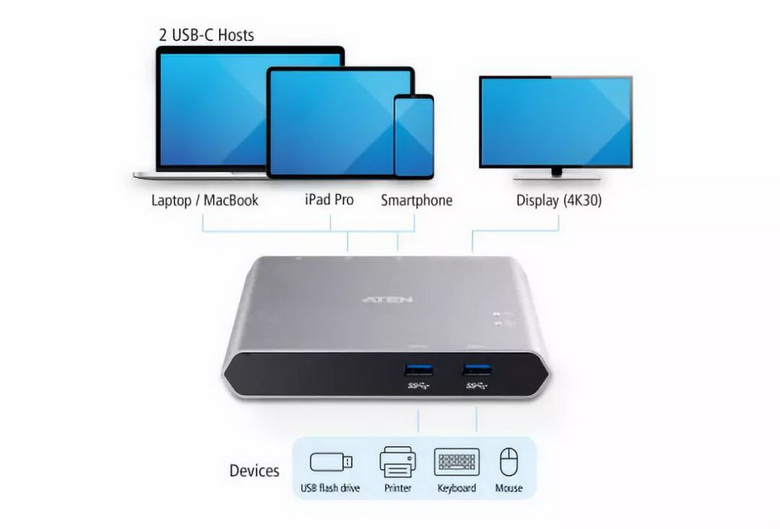 電腦及音頻功能獨立切換–一臺電腦操作KVM設備,另一臺針對音頻設備做控制*