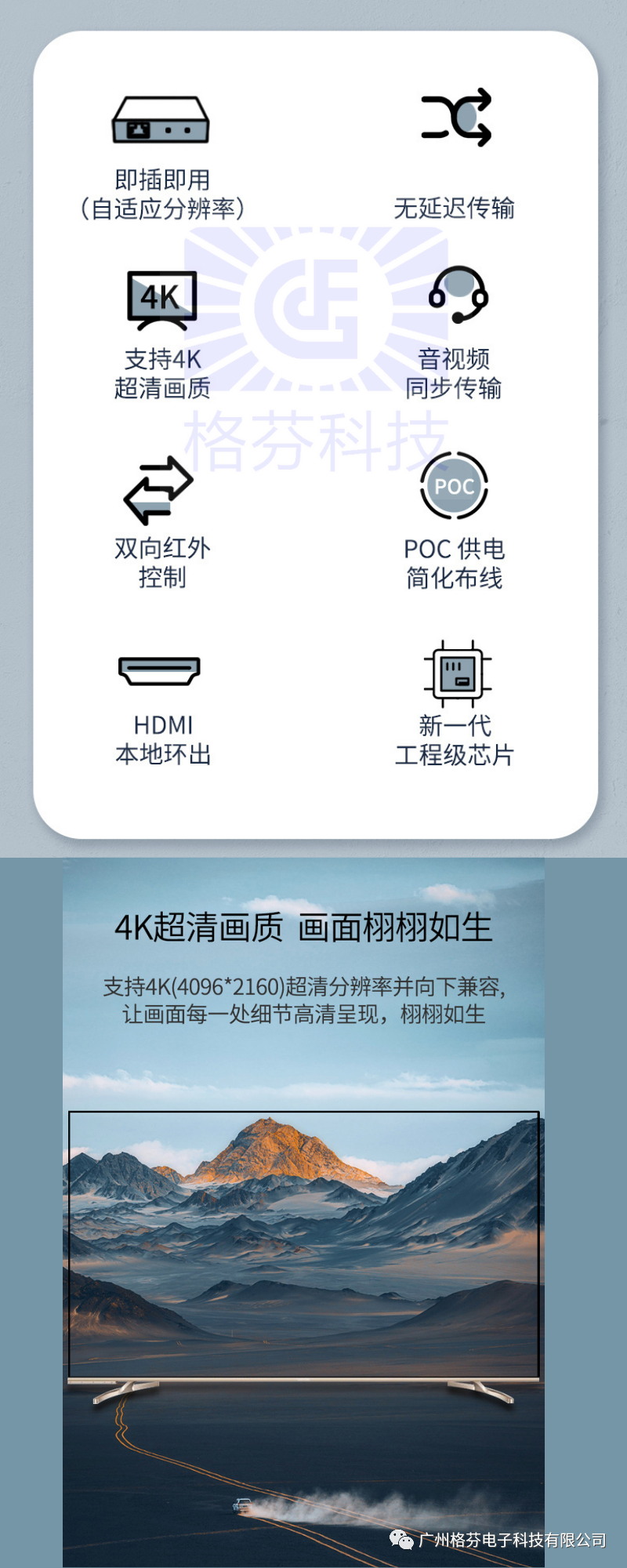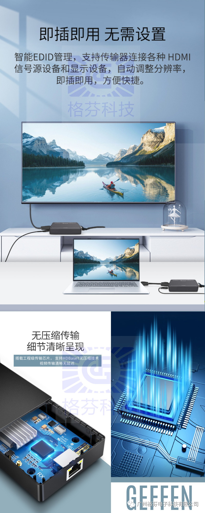 格芬電子科技有限公司始終站在數(shù)字視頻和HDTV發(fā)展的最前沿,最直接地面對(duì)市場(chǎng),為HDTV分配、延長(zhǎng)和轉(zhuǎn)換提供解決方案,最大地優(yōu)化數(shù)字視頻資源。