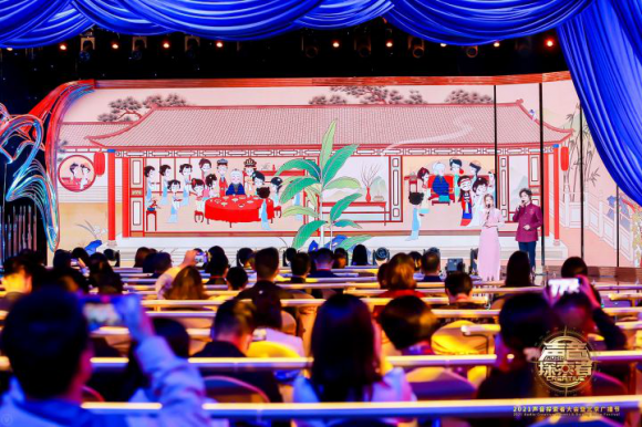 在經(jīng)典作品展演環(huán)節(jié),《凱叔紅樓夢》被北京廣播電視臺推選為重點作品亮相,現(xiàn)場邀請到寶玉、黛玉的配音演員楊天翔、周侗,配合3D長卷畫軸,演繹了【寶黛初見】經(jīng)典片段,將現(xiàn)場觀眾帶進紅樓的精彩情景中。