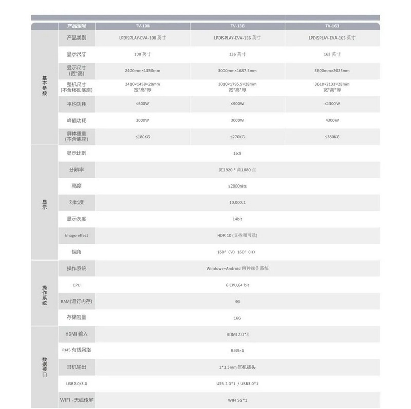 108“、136”、169“大尺寸,給你帶來(lái)沉浸式的視覺體驗(yàn),另外搭配堅(jiān)固的腳架方便移動(dòng),多種數(shù)據(jù)輸入輸出接口更加方便辦公。