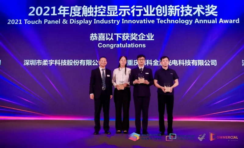 ▲ 柔宇科技榮獲了本次深圳商用顯示技術(shù)展「2021年度觸控顯示行業(yè)創(chuàng)新技術(shù)獎(jiǎng)」。