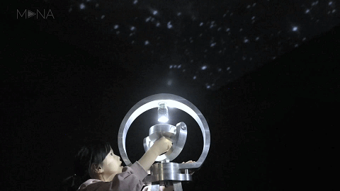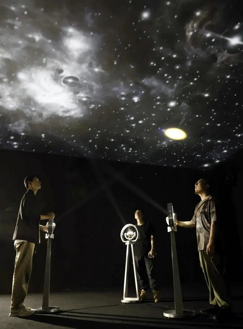 觀者通過(guò)操縱光控互動(dòng)形式,搜尋暗藏于空間(宇宙星云)中的聲音,光點(diǎn)所尋之處將呈現(xiàn)由著名戲劇演創(chuàng)人員錄制的經(jīng)典戲劇獨(dú)白。將時(shí)間與空間、經(jīng)典與當(dāng)下、公眾與演創(chuàng)人員置于同一維度:現(xiàn)實(shí)生活的戲劇時(shí)空,是謂剎那即永恒。