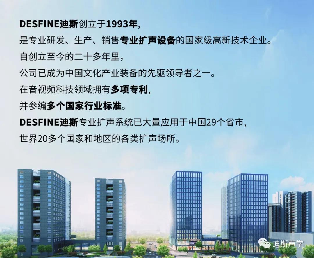 迪斯成立于1993年,是專注研發(fā)、生產(chǎn)、銷售大型專業(yè)音響擴(kuò)聲設(shè)備的國(guó)家級(jí)高新技術(shù)企業(yè)。自創(chuàng)立至今的二十多年里,公司已成為全球領(lǐng)先的專業(yè)音頻系統(tǒng)供應(yīng)商之一。