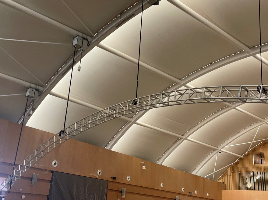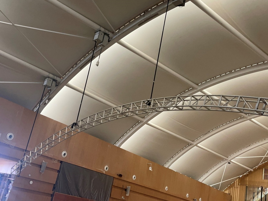 我們的燈光吊點(diǎn)設(shè)備在 二樓穹頂展館(會(huì)議中心),和一樓的宴會(huì)中心 負(fù)責(zé)所有的燈光音響設(shè)備升降功能的實(shí)現(xiàn)!
