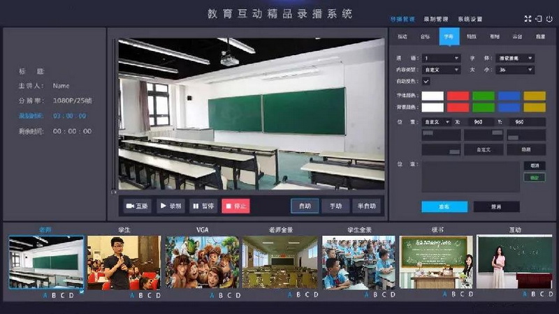 全自動錄播系統(tǒng)主要完成教師、學(xué)生的視頻自動跟蹤采集,音頻智能采集,教師電腦屏幕截取,教師/學(xué)生視頻/計算機畫面智能導(dǎo)播,以上信號源自動傳送至課件實時錄制系統(tǒng)生成優(yōu)質(zhì)的精品課程,同時通過課堂直播系統(tǒng)在局域網(wǎng)、互聯(lián)網(wǎng)上直播為遠端用戶提供在線實時學(xué)習(xí)的平臺。