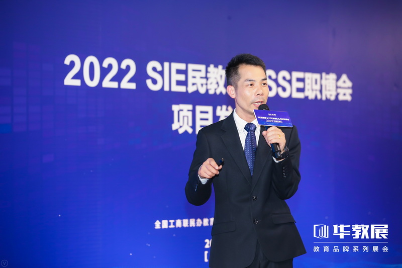 SSE職博會項目經(jīng)理陳小彬分別從展會意義、展會內(nèi)容及職業(yè)教育未來發(fā)展三個方面與現(xiàn)場嘉賓做分享匯報。