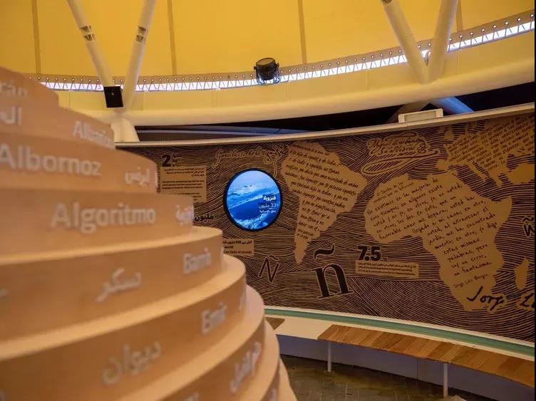 在圓錐體下方的廣場上, “閃光”(Destellos)展區(qū)由一系列的壁畫、裝置組成,展現(xiàn)了西班牙文化對世界的影響。