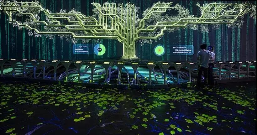 在西班牙館的底層,是一個3D沉浸式人造森林,稱為"智能森林 "。這個展區(qū)向我們展示了一個充滿希望的可持續(xù)發(fā)展未來。
