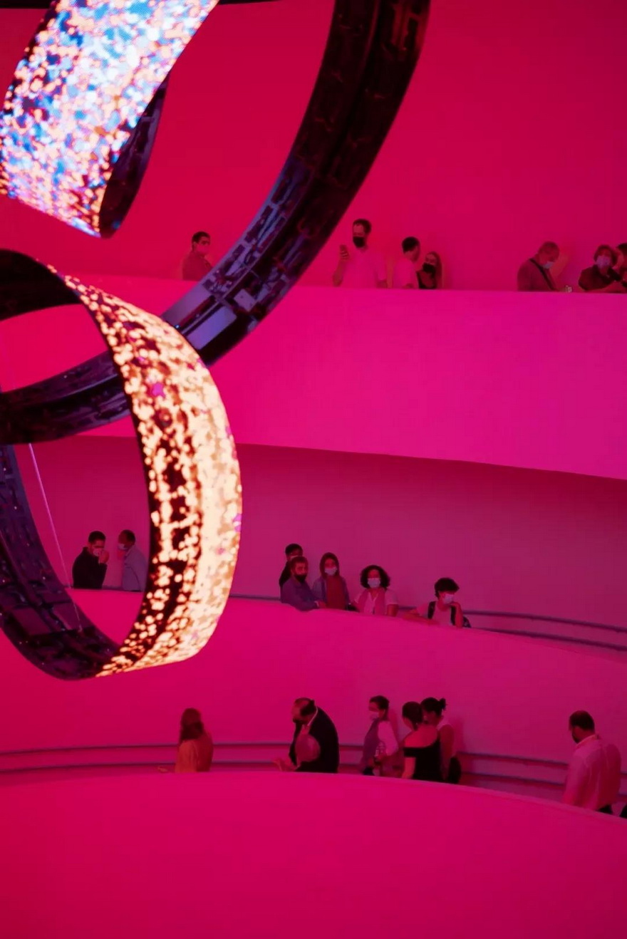 在主館的中庭,是Daniel Canogar工作室制作的一個三屏環(huán)形互動裝置Dynamo。