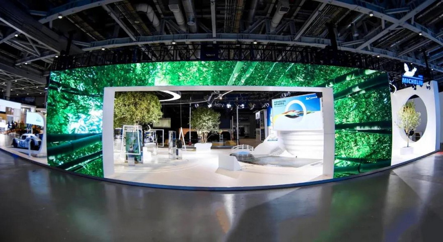 米其林將中國(guó)園林設(shè)計(jì)與品牌理念有機(jī)結(jié)合,打造了“園林4.0”展區(qū),闡述“一切皆可持續(xù)”的企業(yè)愿景。作為最為重要的意象構(gòu)筑載體,近百平米洲明超高清大屏顯示穩(wěn)定、畫質(zhì)出眾,作為“園林4.0”點(diǎn)睛之筆,與所有參觀者盡展生活之旅、共享進(jìn)步之道。