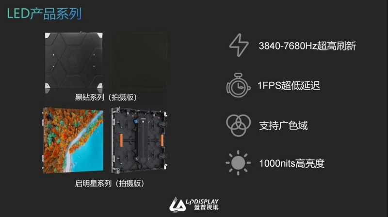 此外,藍(lán)普視訊黑鉆系列(拍攝版)與啟明星系列(拍攝版)刷新率可達(dá)3840-7680hz,能有效抑制拍攝時(shí)畫面出現(xiàn)閃動(dòng)的痛點(diǎn),圖像從而更穩(wěn)定;亮度達(dá)到1000nits以上,能使虛擬環(huán)境的光線照射到演員或道具上時(shí)更加逼真。
