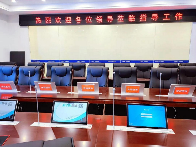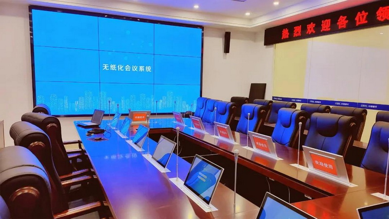 無紙化會(huì)議系統(tǒng):為實(shí)現(xiàn)會(huì)議的全程無紙化,本次項(xiàng)目采用15.6寸雙屏帶話筒無紙化會(huì)議終端,該系統(tǒng)除了集成了全數(shù)字會(huì)議系統(tǒng)軟件,還能達(dá)到對(duì)會(huì)議議程全數(shù)字化管理。