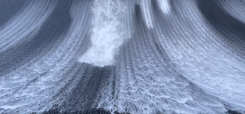 在迪拜世博上出現(xiàn)了一個(gè)水景觀裝置“Surreal(超現(xiàn)實(shí))”,它由 153 條水波組成,面積有半個(gè)足球場(chǎng)大。“Surreal”由美國(guó)洛杉磯水景設(shè)計(jì)公司W(wǎng)ET Design 創(chuàng)作完成,不同于常規(guī)的向上噴射的噴泉形式,而是模擬了瀑布從上而下流下的狀態(tài),另外,它會(huì)給人一種瀑布逆流的錯(cuò)覺,因?yàn)樗诳煲鞯降撞繒r(shí),又回調(diào)頭返回十幾米高的墻壁。在整個(gè)噴泉的中央,還有一個(gè)火焰噴射裝置,夜幕降臨,華燈初上,火焰和噴泉共同出現(xiàn),制造出一種水火共生的效果。