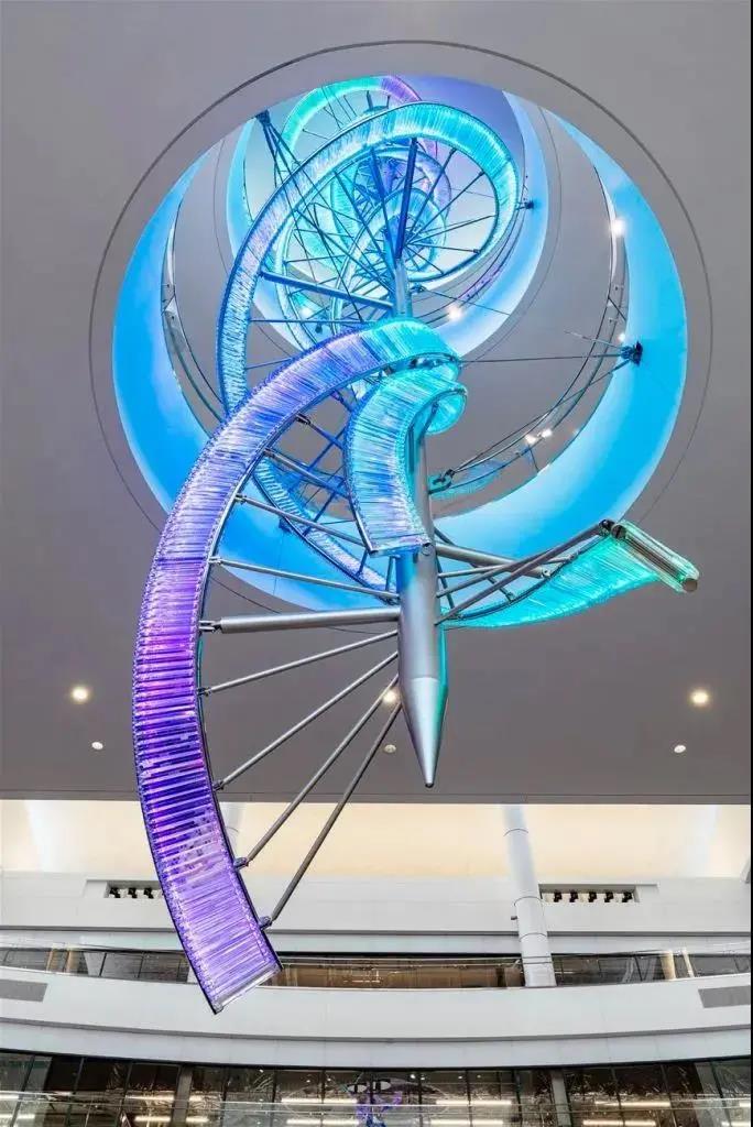 投資17.3億美元的洛杉磯國(guó)際機(jī)場(chǎng)(LAX)西登機(jī)口投入運(yùn)營(yíng),來(lái)自捷克的水晶品牌 Preciosa Lighting為此訂做了一個(gè)照明裝置《Crystal Swell》——一條65米長(zhǎng)的“水晶絲帶”,該作品由 Preciosa Lighting 與 Corgan 建筑公司合作完成,作品以“Ocean Swell”(海洋涌浪)為設(shè)計(jì)理念,讓人聯(lián)想到唯美的海浪曲線。