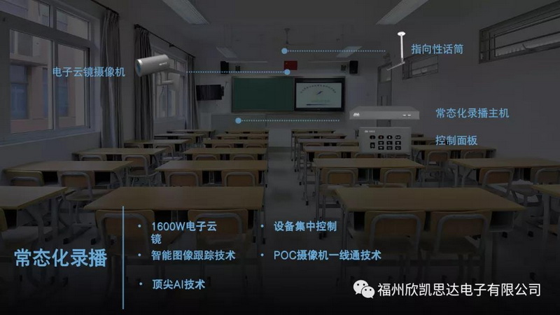 ● 常態(tài)化錄播:常態(tài)化錄播是基于學(xué)校需求以及常態(tài)化應(yīng)用場景構(gòu)建所衍生的錄播產(chǎn)品品類,彌補(bǔ)了精品錄播建設(shè)成本高建設(shè)環(huán)境改造復(fù)雜而無法做到每間教室建設(shè),常態(tài)化應(yīng)用的短板。并且常態(tài)化錄播的建設(shè)更多的是注重課堂隨錄、互動(dòng)課堂的使用場景,幫助學(xué)校實(shí)現(xiàn)多教室常態(tài)化進(jìn)行互動(dòng)課堂、直播課、以及課程回顧等需求。目前欣凱思達(dá)欣凱思達(dá)福州、廈門展廳均有建設(shè)樣板教室,歡迎前來參觀體驗(yàn)。