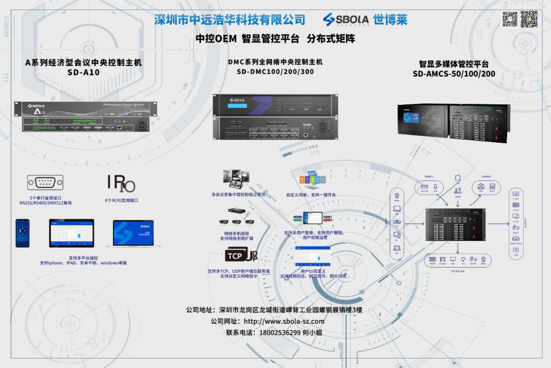 深圳市中遠(yuǎn)浩華科技有限公司(世博萊SBOLA)是一家以O(shè)EM/ODM分銷為主,工程為輔的AV行業(yè)企業(yè)。中遠(yuǎn)浩華公司主要以中央控