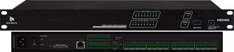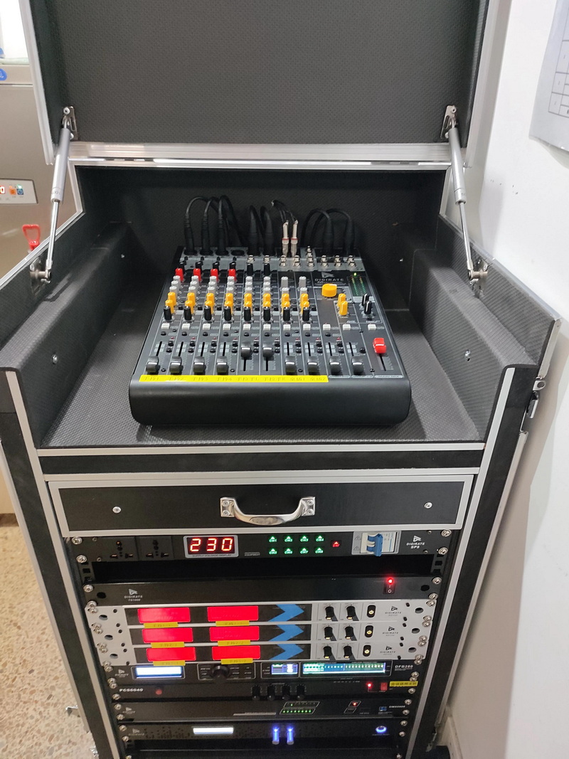 此次改造中,核心兩個設備為(DIGIRATE)迪吉瑞帶HDMI模擬調(diào)音臺以及數(shù)字音頻媒體矩陣DMX0808