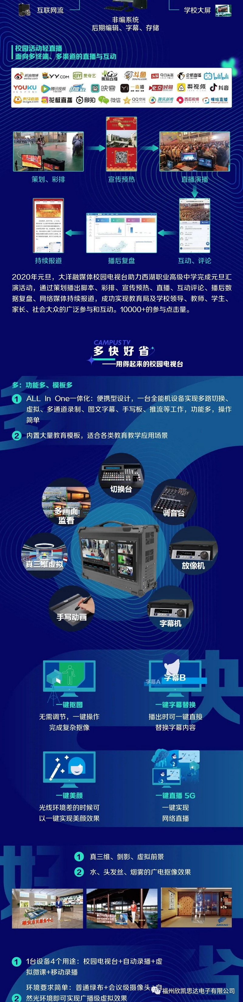 凱思達電子公司主要定位于教育行業(yè)服務與音視頻解決方案,主要從事代理經(jīng)營教育行業(yè)相關(guān)的軟、硬件設備。我們始終選擇與品質(zhì)優(yōu)良和售后到位的品牌合作。目前公司主要代理產(chǎn)品及經(jīng)營業(yè)務有:索尼品牌投影機、索尼錄播、VP-BOX多視窗系統(tǒng)、索尼W-EFP全無線高清移動節(jié)目制作系統(tǒng)、非線性編輯軟件、媒資存儲管理系統(tǒng)、專業(yè)音頻產(chǎn)品、巴可工程投影機、明基投影機、SEEWO希沃液晶觸摸一體機、盈可視全自動高清錄播系統(tǒng)、HP商用電腦、意大利FBT音箱產(chǎn)品、美國QSC系列音頻設備產(chǎn)品、貝塔斯瑞專業(yè)音頻系列產(chǎn)品。