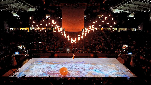 在 3 分鐘長的視頻映射節(jié)目中,通過伴隨表演者的 100 個動能球,講述了籃球永無止境的炒作故事。通過3D映射技術,將籃球場作為畫布,讓比賽的鼓舞人心、動感、激動人心的能量環(huán)繞在觀眾的周圍!