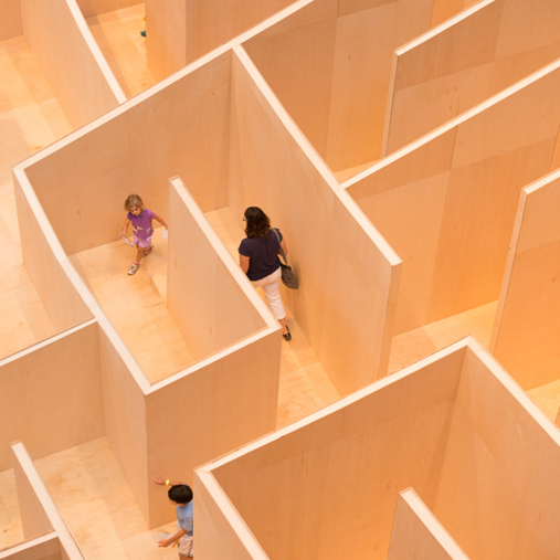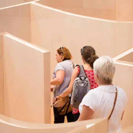 博物館與BIG-Bjarke Ingels集團(tuán)合作為博物館的歷史悠久的禮堂打造了一個(gè)前所未有的大型迷宮。這座楓木夾板結(jié)構(gòu)高約5.49米,面積為18.29米×18.29米,迷宮擁有一系列曲折的結(jié)構(gòu),供游客穿行和探索。