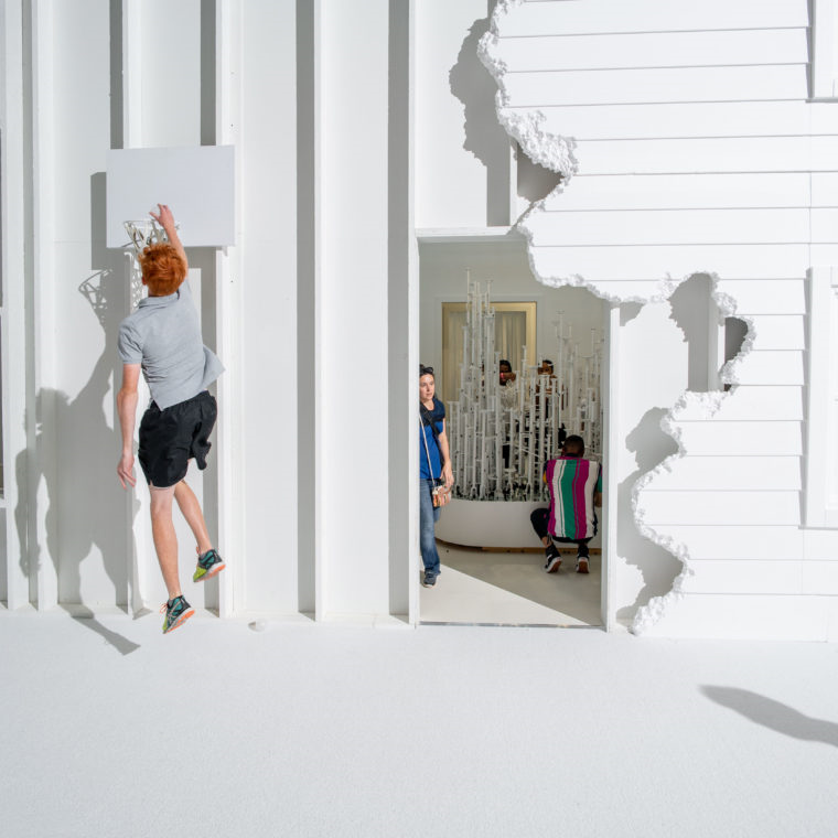 趣樂屋是Snarkitecture的第一個(gè)綜合博物館展覽,包含了工作室在整個(gè)大廳中的多種活動(dòng)。由意大利的Maria Cristina Didero策展,展覽的核心是在Snarkitecture設(shè)計(jì)的房子里呈現(xiàn)出一個(gè)獨(dú)立的結(jié)構(gòu),讓人想起傳統(tǒng)的屋子的概念。