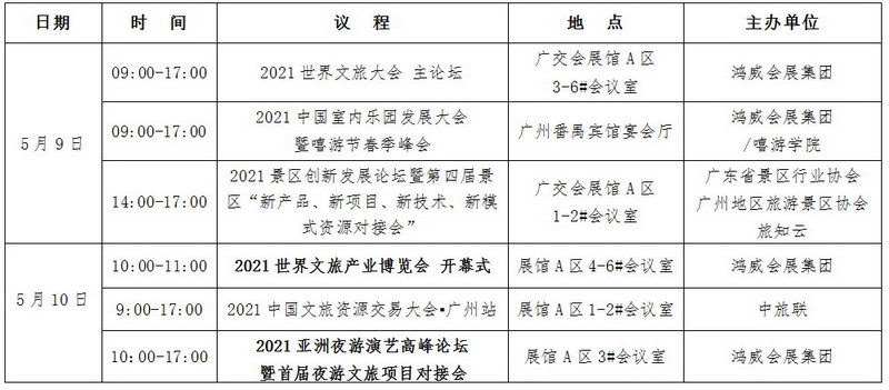 2021世界文旅大會(huì)主論壇及分論壇、同期活動(dòng)安排(擬)