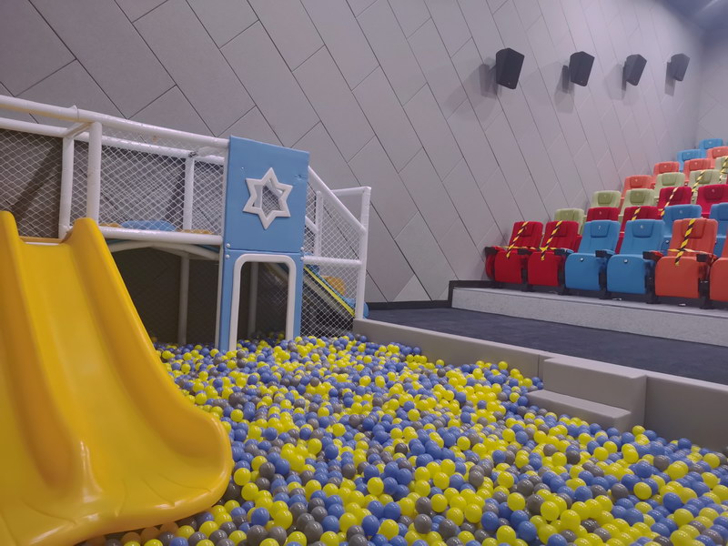影城七個(gè)影廳可同時(shí)容納910名影迷觀影。從座椅、銀幕到音效系統(tǒng)、放映機(jī)都以為觀影者提供極具震撼的影音視聽(tīng)效果為標(biāo)準(zhǔn)。以親子風(fēng)格為主的放映廳,廳內(nèi)設(shè)計(jì)了海洋球區(qū)域,大人觀影的同時(shí)孩子們可以在“海洋”里徜徉。