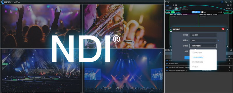 Multiview可以將多畫(huà)面視頻重新壓縮成NDI流輸出,并允許此NDI流在網(wǎng)絡(luò)中被發(fā)現(xiàn),你也可以自行設(shè)置它的分辨率、幀率等。