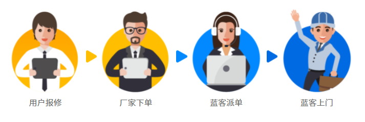 用戶報(bào)修—廠家下單—藍(lán)客派單—藍(lán)客上門。