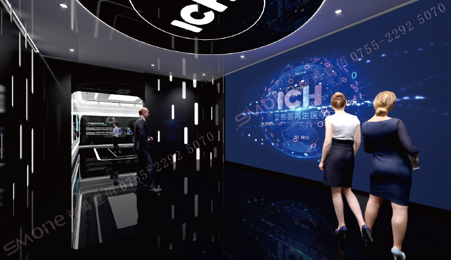 神馬壹佰采用墻面投影加鏡面反射出不同的細(xì)胞造型,形成細(xì)胞宇宙空間,營造撲面而來的細(xì)胞畫面帶來極強(qiáng)的視覺沖擊感。
