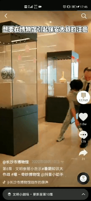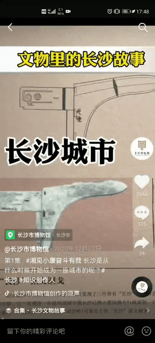 自2020年運營新媒體抖音平臺后,長沙市博物館抖音號開設(shè)《長沙文物故事解讀傳播》IP欄目——包括“長沙文物故事系列”、“長沙文化地理系列”、“館長講文物”、“文明小劇場系列”以及特展相關(guān)專題等系列視頻解讀,傳播長沙文物故事。
