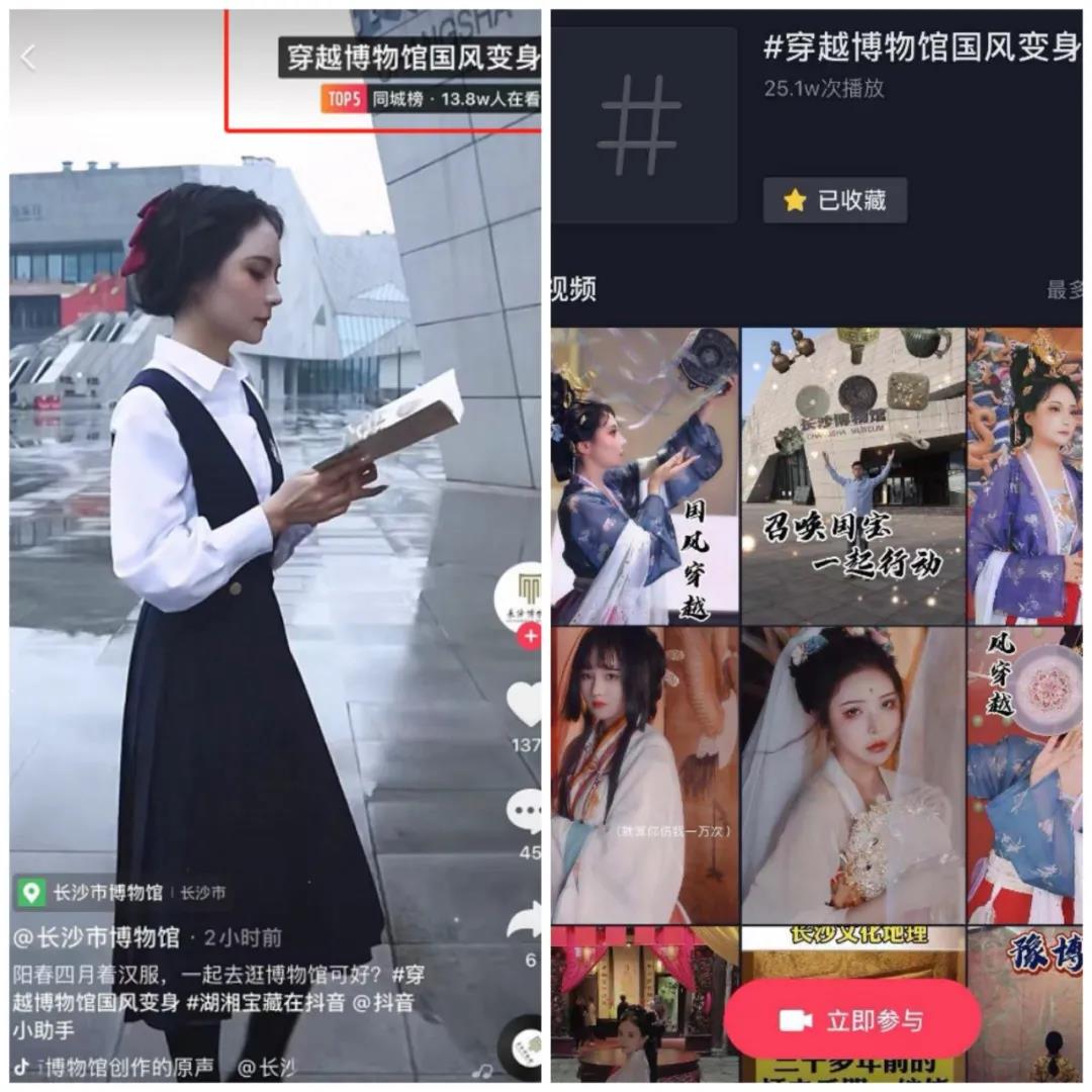 流量時代,好的營銷都需要流量的“保駕護航”。因此,長沙市博物館積極參與各大相關(guān)話題挑戰(zhàn)賽,既保證了在抖音平臺的曝光力度,也助力品牌實現(xiàn)了聲量的最大化。