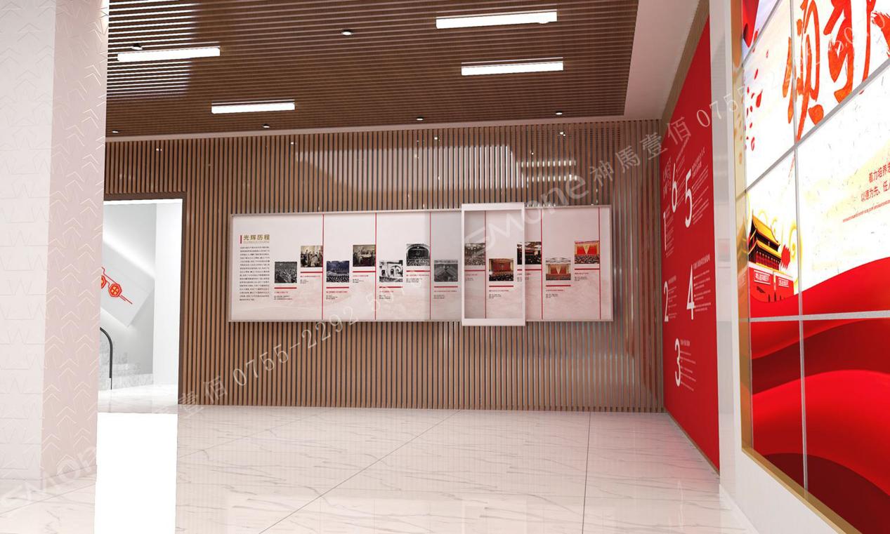 互動滑軌屏回顧過去黨的100年光輝歷程,在這里展示了中國共產(chǎn)黨從一大到十九大的光輝歷程。