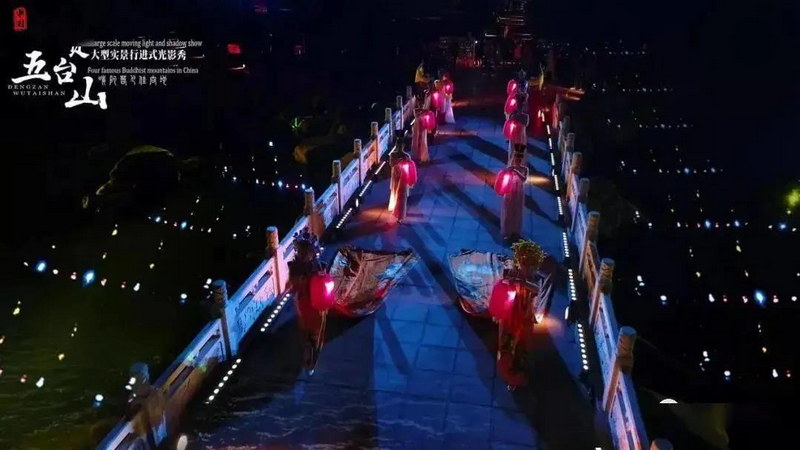 五臺(tái)山“空間光影秀”旖旎炫彩的燈光點(diǎn)亮了五臺(tái)山景區(qū)中心的夜空輪廓線,彌補(bǔ)了五臺(tái)山?jīng)]有大型空間實(shí)景光影秀的空白,同時(shí)讓世界上唯一一座世界文化遺產(chǎn)佛教圣山五臺(tái)山成為了中國佛教實(shí)景文化藝術(shù)光影演出新地標(biāo)。