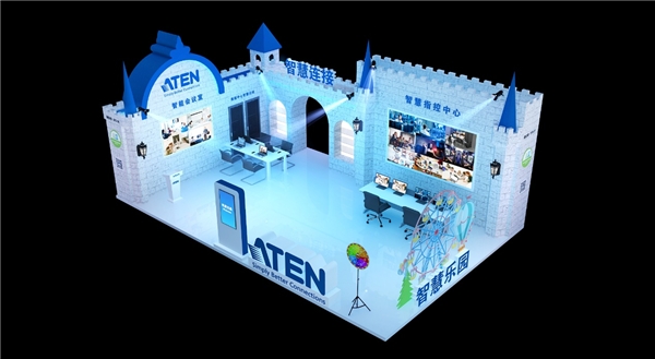在展位入口設置了生動的主題形象,整個展區(qū)以城堡元素為設計理念,更具未來科技信息感。同時在展區(qū)功能分區(qū)上,ATEN將智慧指控調度中心、智慧會議室、數據中心智慧運維等區(qū)域巧妙地融入場景中,并在聲光電的科技運用下,將專業(yè)觀眾歡快的引入“智慧樂園”中來一起體驗、享受一場智慧,活潑,與眾不同的視聽盛宴。展區(qū)設置的演講區(qū)還將帶來精彩紛呈的專業(yè)演講,更有靜態(tài)產品展區(qū)供觀眾參觀感受。整個展區(qū)設計風格新穎,功能分區(qū)豐富,看點紛呈,新意十足。