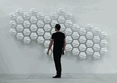 每個(gè)方塊跟隨觀眾揮動(dòng)的手,靈動(dòng)的變化曲線。