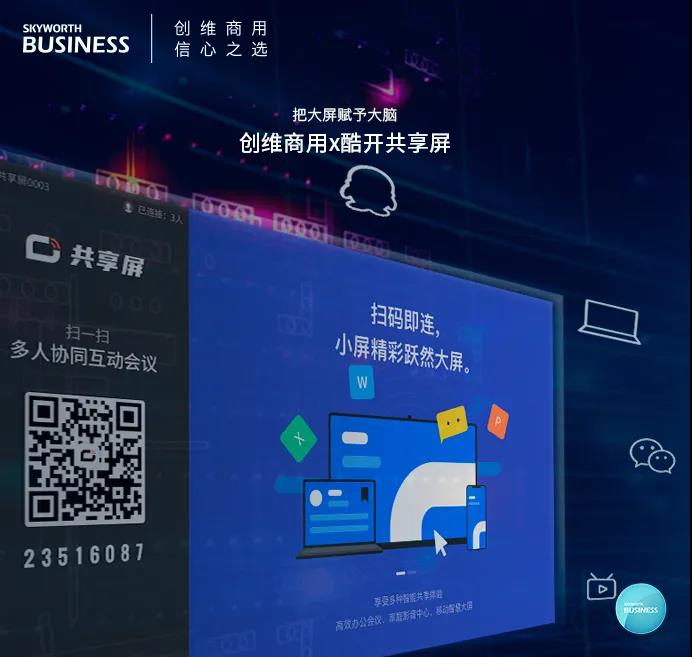 針對商用活動中的內容的共享,Swaiot PROTV™|MAX系列K98通過酷開共享屏幫助實現跨屏連接,快速互聯、便捷共享,為商務辦公帶來高效協(xié)同的一站式體驗。開放的共享平臺還能夠帶來無盡的資源,讓畫面不止在眼前,真正實現視界無界。