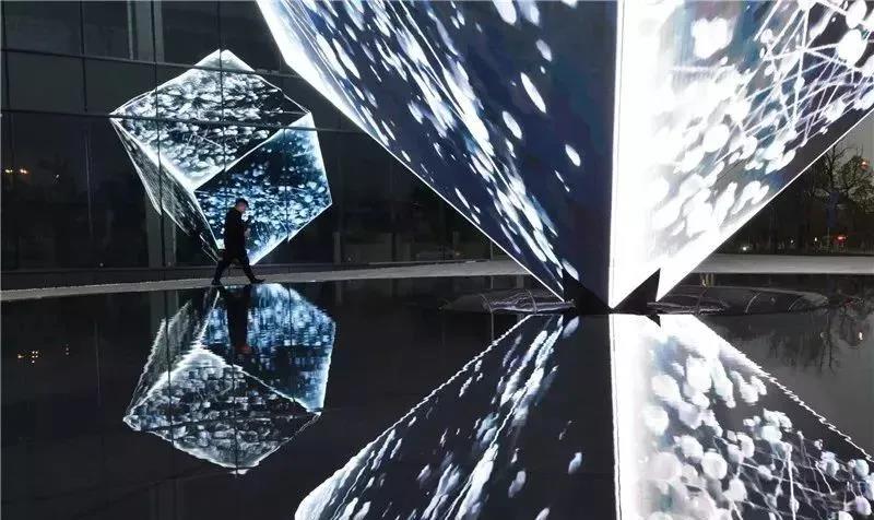 藝術家們對新媒體藝術的創(chuàng)新就像人類對宇宙的探索從沒停止過。裝置將天文與雕塑、建筑等藝術形式相結合,營造出一種變幻莫測的美妙畫面,給人強烈的視覺沖擊力,立方體的造型更可以360度無死角的圍觀欣賞拍照。