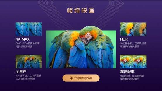 “幀綺映畫”代表著4K MAX、HDR、全景聲、超高幀率這些曾經(jīng)遙遠的技術(shù)名詞已經(jīng)變成觸手可及的體驗,用戶感受到的是觀看的畫面色彩更加細膩了,細節(jié)更加生動了,一些運動場面更加順滑了,以及電視傳出的聲音就環(huán)繞在你周圍,仿佛置身其中。