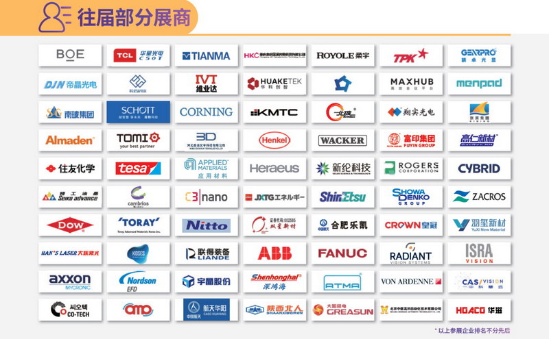 觸控顯示設(shè)備類展商德國馮阿登納、安達(dá)自動(dòng)化、鼎力自動(dòng)化、深鴻海、聯(lián)得裝備、中電科風(fēng)華、霍廷格電子、海峰機(jī)器人、ISRA VISION、申克博士、中科慧遠(yuǎn)、瑞淀光學(xué)、柯尼卡美能達(dá)、高凱精密、大族粵銘、上方裝備、宏大真空、國泰真空、上銀科技、廣東速美達(dá)、廣州晶泰科技;材料類展商德國漢高、日本艾迪科、賽伍技術(shù)、富印膠粘、樂凱新材、瑞康真空、羅杰斯公司、中山智隆、帝國油墨、精工油墨、高仁新材、一鑫新材、派樂瑪、廈門韋爾通、江蘇日久光電、匯馳新材等一大批知名企業(yè)也將亮相展會(huì)現(xiàn)場。它們通過在顯示模組、玻璃基板、液晶材料、制造設(shè)備等領(lǐng)域的“深耕備播”,力求在本次展會(huì)搶占先機(jī),提升產(chǎn)業(yè)技術(shù)實(shí)力。