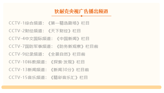 狄耐克央視廣告播出頻道