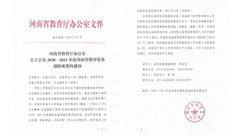 根據(jù)河南省教育廳辦公室教辦技裝【2021】177號文件,清大視訊成功入選2020-2021年度河南省教育裝備創(chuàng)新成果名錄并獲頒布公示,其中清大視訊兩項創(chuàng)新成果“清大視訊智慧課堂解決方案”、“清大視訊智慧照明解決方案”涵蓋了我司智能交互平板和教室照明燈具數(shù)款明星產(chǎn)品。