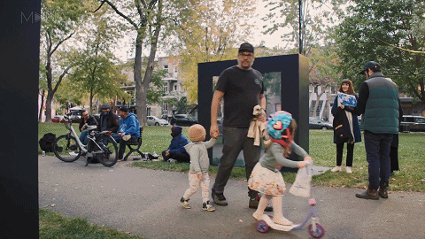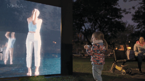 “DUO”是一個(gè)數(shù)字影像裝置,它是加拿大創(chuàng)意團(tuán)隊(duì) HUB Studio 與編舞師Virginie Brunelle合作的第一個(gè)線下案例,是一次藝術(shù)和技術(shù)的美妙結(jié)合,將原本在劇院演出的舞蹈搬到了公共空間。該作品由兩個(gè)防風(fēng)雨的LED屏幕組成,屏幕的背面覆蓋有反射性的表面,使其與環(huán)境和諧地融為一體。屏幕所產(chǎn)生的光,產(chǎn)生了垂直于街道的光干擾,在日常生活中開(kāi)辟出一處詩(shī)意空間。