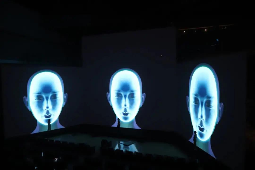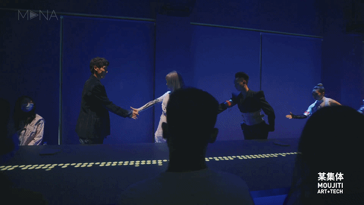 《現(xiàn)在史·數(shù)字人類[-∞,∞]》從虛擬和現(xiàn)實(shí)出發(fā),作品分為了共生、束縛和輪回三個(gè)過(guò)程。現(xiàn)場(chǎng)是由多名物理舞者與虛擬數(shù)字人類進(jìn)行物理與數(shù)字的隔空界面對(duì)話。創(chuàng)作內(nèi)容聚焦于時(shí)間與人類記憶的話題,從虛擬的數(shù)字人類產(chǎn)生故事角色, 將人類所處的狀態(tài)概念為一個(gè)莫比烏斯環(huán),當(dāng)想要前行時(shí),卻在當(dāng)下繞圈子,當(dāng)想要進(jìn)入時(shí),卻發(fā)現(xiàn)身處圈外,然而我們其實(shí)一直未離開(kāi)過(guò)這個(gè)圈。