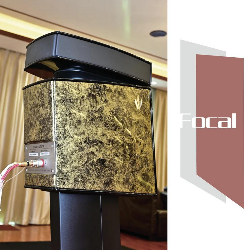 如今,全球限量50對的Diablo Utopia Colour Evo黑金限量版已經(jīng)登陸中國,有幸在Focal中國總代理廣州域豐音響位于番禺的倉儲中心試音室目睹這對外觀比照片更為漂亮的Focal旗艦書架箱,見到這對音箱的時(shí)候我讓域豐音響的工作人員先熱機(jī),茶都還沒喝一口就“奮不顧聽”一番拍攝,實(shí)物實(shí)在是太漂亮,這FocalDiablo Utopia Colour Evo黑金限量版的外觀實(shí)在太難拍了,亮色黑色鋼琴漆底上的金飾工藝都是手工的,因此每一對Diablo Utopia Colour Evo金飾紋路都不一樣,而亮色黑色鋼琴和金飾紋路會反光,拍照它箱體金色質(zhì)感和色彩很難忠實(shí)還原,我也算是攝影圈混跡多年的,多年前曾開玩笑說自己是中國書法家群體中拍攝音響現(xiàn)場器材拍得最好、拍攝音響最好的攝影師中書法寫得最好的,可在一這Diablo Utopia Colour Evo黑金限量板跟前有點(diǎn)無能為力了,一番拍攝下來也只能挑選一部分照片使用,所幸是數(shù)碼相機(jī),要是在膠卷時(shí)代恐怕是謀殺菲林了!