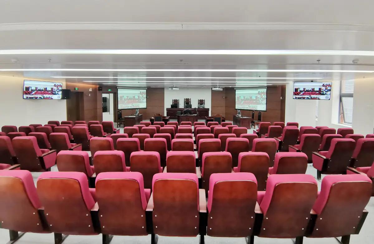 3、審理庭內(nèi)的旁聽學(xué)員通過庭內(nèi)大屏幕顯示設(shè)備,審理庭外的相關(guān)人員通過網(wǎng)絡(luò),對(duì)審理的各類案件實(shí)現(xiàn)學(xué)習(xí)、了解和監(jiān)督。